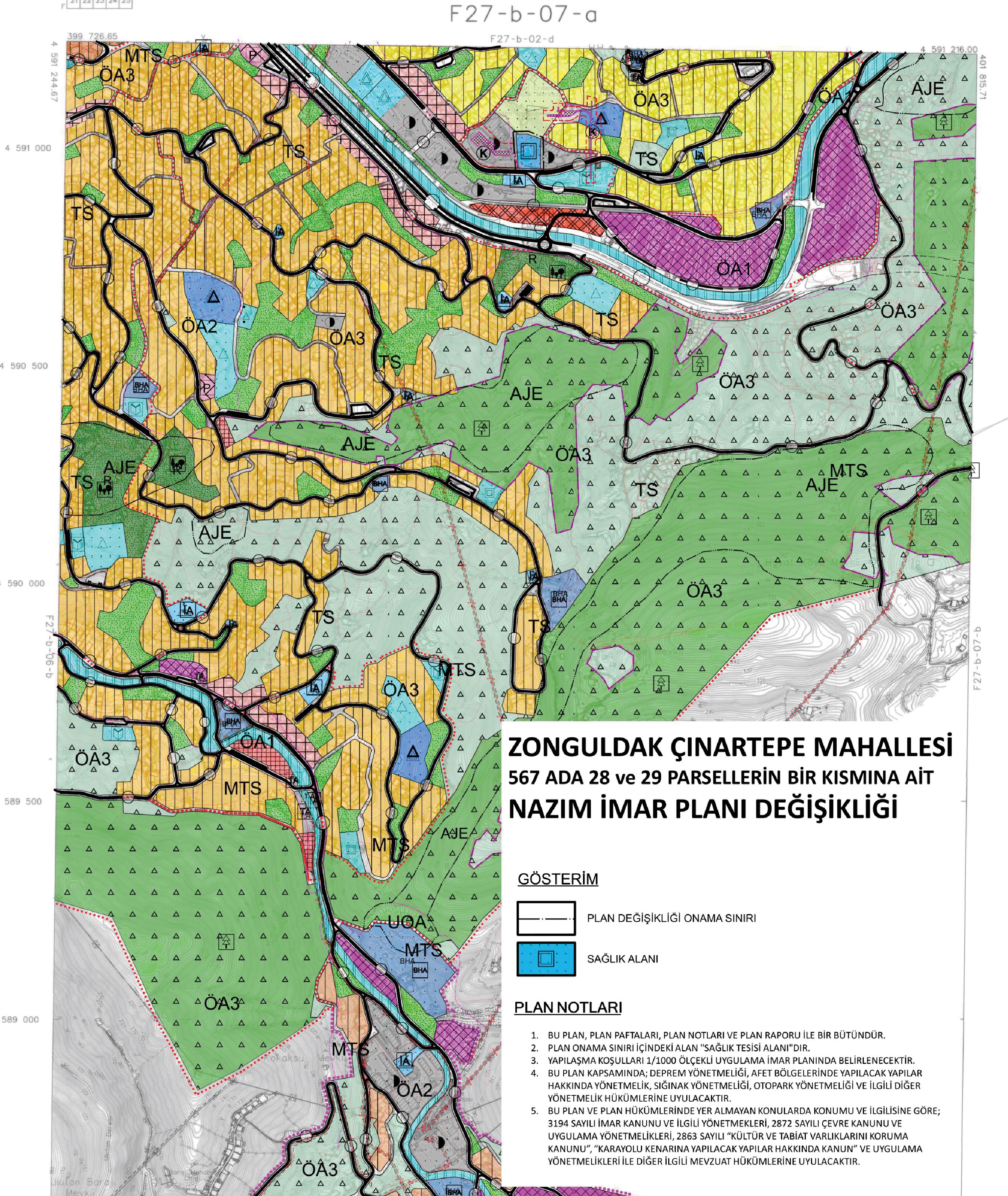 Çınartepe Mah, 567 ada 28-29 nolu parsellere yönelik 1/5000 ölçekli Nazım İmar Planı ile 1/1000 ölçekli Uyg. İmar Planı Değş. |