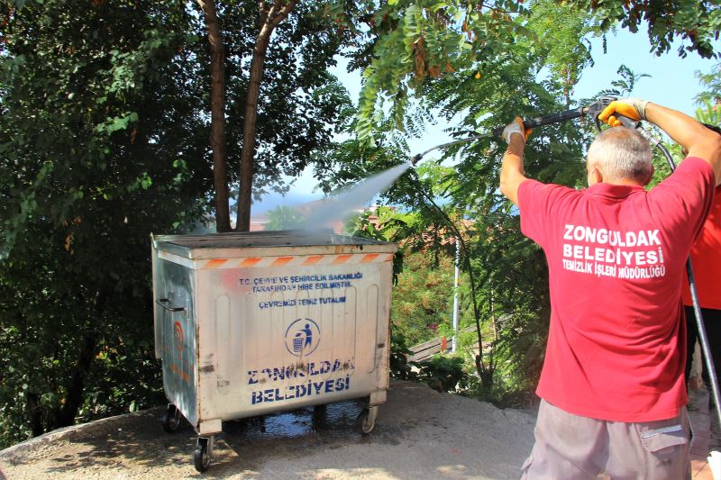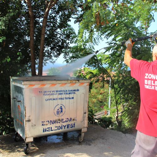 Temizlik İşleri Müdürlüğüne bağlı ekiplerimiz çöp konteynerlerimizi mikroplardan arındırıyorlar.