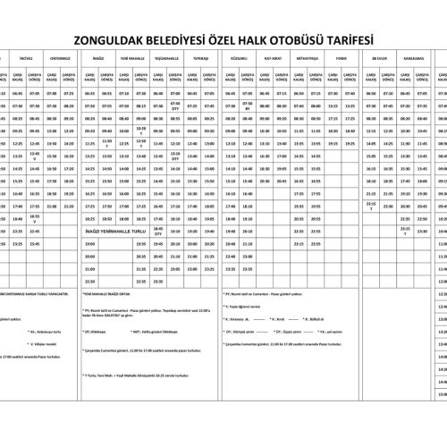 22 Ağustos Pazartesi günü itibarıyla başlayacak olan Zonguldak Belediyesi Özel Halk Otobüsü tarife listemiz aşağıdadır.