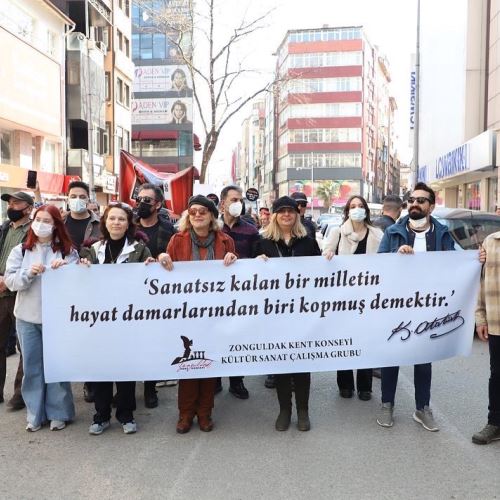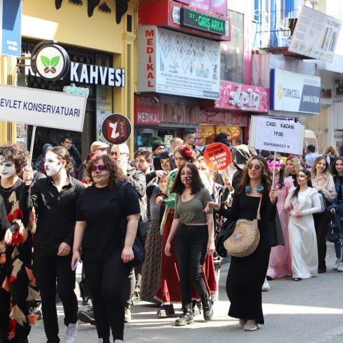 Kültür ve Sosyal İşler Müdürlüğümüz tarafından ‘27 Mart Dünya Tiyatro Günü’ nedeniyle tiyatro gruplarının katılımı ile başlayan ‘Amatör Tiyatrolar Şenliği’ kortej yürüyüşü Gazipaşa Caddesi’nde renkli görüntüler yaşandı. Tiyatro sanatçılarının ve tiyatroya gönül verenlerin katıldığı yürüyüş, Madenci Anıtı'nden başlayarak Vilayet Meydanı'na kadar devam etti.Bir hafta boyunca sergilenecek olan tiyatro gösterileri ücretsiz olup, tüm tiyatroseverleri bu anlamlı ve sanat dolu etkinliğe davet ediyoruz.