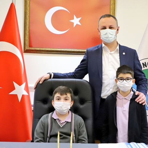 23 Nisan Ulusal Egemenlik ve Çocuk Bayramı nedeniyle, Belediye Başkanımız Dr. Ömer Selim Alan Başkanlık makamını Merkez Mimar Sinan İlkokulu 4-A sınıfı öğrencilerinden Abdullah Mete Sıbıç’a devretti. Ziyarete İl Milli Eğitim Müdür Yardımcısı Harun Akgül, Mimar Sinan İlkokulu Müdür Yardımcısı Mustafa Alkaya, Öğretmen Gökhan Oğuzhan, 3-B sınıfı öğrencilerinden Ali Rıza Kavak katıldı.