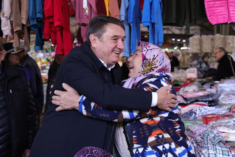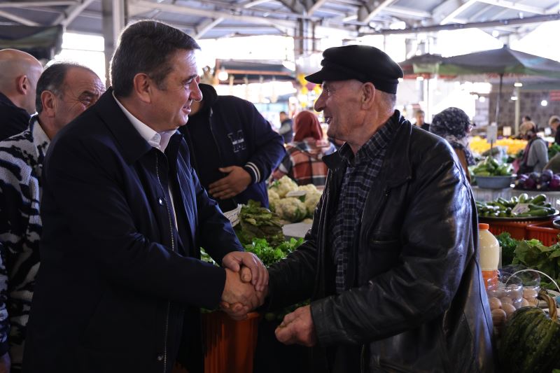 Pazar yerinde esnafın tezgâhlarını tek tek gezen Belediye Başkanımız Sn. Tahsin Erdem, esnafların taleplerini, önerilerini ve düşüncelerini dinledi. Vatandaşlarımızla da içten sohbetler gerçekleştiren Erdem, iletilen konuların değerlendirileceğini ve çözüm için gerekli çalışmaların yapılacağını belirtti. Ziyaret süresince birçok vatandaşla hatıra fotoğrafı çektiren Erdem, halkla iç içe, ulaşılabilir ve çözüm odaklı bir belediyecilik anlayışıyla çalışmaya devam edeceklerini ifade etti.
